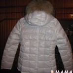 Пуховик, 80% пух утиный, 20% перо, цвет белый глянец, на капюшоне мех енот (натуральный), капюшон отстегивается, мех отстегивается,