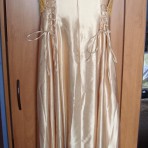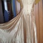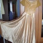 Продаю свое платье. Можно сказать что новое,одето было 2 раза.Размер 44-46,сзади утяжки по фигурке можно сделать.Платье очень красивое,спинка закрыта,также можно с кольцами и подьюпником одевать,пышное! Цвета золота,сверху вышивка усыпана блестками. Если с моего города можно подьехать посмотреть, померять!
