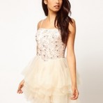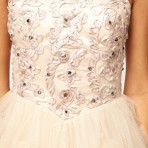 Материал: атлас, органза. Лиф расшит лентами и украшен кристаллами Сваровски. Есть встроенный бюстгальтер, красиво приподнимающий грудь.
