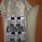 продаю нарядное платье и болеро (покупала в магазине белорусского трикатажа, одевала 2 раза) - платье-футляр и болеро на наш 48-й размер. ткань парча, очень нарядно и богато выглядит. к наряду подойдут и черные туфли-лодочки и блестящие босоножки.