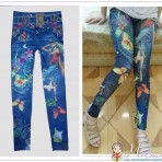 Стильные леггинсы идеально подчеркивают фигуру, благодаря эластичности ткани из которой они выполнены. Имитация джинсовой ткани с перманентными складками и потертостями - отличное дизайнерское решение. Модель подходит, как для повседневной носки, так и для похода в клуб.