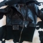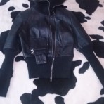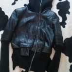 Стильная кожаная куртка с вязанными вставками б/у в отличном состоянии размер 44,длинна куртки от воротника(воротник двойной вязки) 55 см (15 см вязки снизу),длина рукава от плеча 67 см (34 см вязка)...