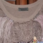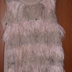 Отличная стильная блузка,кофточка.Спереди украшена перьями страуса и кружевом.К блузочке есть бижутерия подходящая по стилю(цепь с кулоном и серьги).Одето все пару раз.