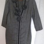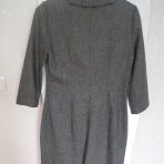 Платье п/шерстяное, приталенное, цвет серый, рукав 3/4. Размер 40. В боковом шве молния. Длина от плеча до низа 96 см, длина рукава 49 см, дл. плеча 11 см, обхват талии 82 см. Платье в отличном состоянии. (торг)