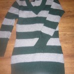 серо-зеленое, 42-46, красивый v-образный вырез, подчеркивает грудь, на меня большое