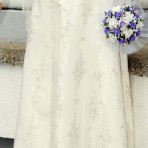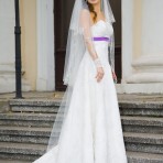 Очень красивое платье молочного цвета А-силуэт со шлейфом (при желании очень удобно подбирается). В идеальном состоянии, одевалось 1 раз (после химчистки), не венчаное. Полностью расшито французким бисером ручной работы, сзади глубокий вырез, корсет регулируется шнуровкой, под грудью фиолетовая лента с изящным бантиком, которую можно легко убрать или заменить. Размер 42-44. Рост 165-175 см. Покупалось в свадебном салоне из новой коллекции "Осень-Зима 2013".
