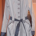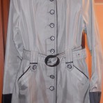 Цена снижена !!! Классический коротенький плащик серого цвета с интересной отделкой. Ткань - итальянская плащевка. Размер 42-44. Воротник - стойка, можно делать и английский. Два пояса (один родной, ...