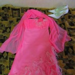 Размер 36, на наш 42-44, одето 1 раз, основа атлас плюс шифон, шаль шифоновая в комплекте, очень красиво смотрится на фигуре. Туфли белые отдельно 200 грн, размер 36.