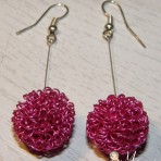 Вдобавок дарю серёжки, которые очень хорошо подходят к этому платью. Длина 6см (включая крючок, «палочку», сам шарик). Шарик – 1,5см х 1,5см как бы «вязаный» из металлической проволоки малинового цвета.