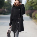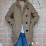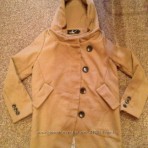 Очень интересное модное пальто , крой косой, что сейчас актуально, с капюшоном и большими пуговицами,
