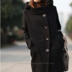 Очень интересное модное пальто , крой косой, что сейчас актуально, с капюшоном и большими пуговицами, ...