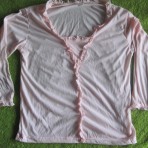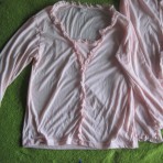 Нежно-розовая пижама, очень мягкая,с длинным рукавом и штанишками с рюшиками, купила и ни разу не одевала, совсем новенькая