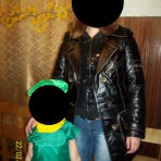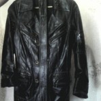 Кожа "Молодой Бычок".Тёмно коричневая, с рыжими строчками, на пуговицах и поясе с железной пряжкой, воротник мысик. В отличном состоянии. возможен торг!