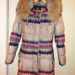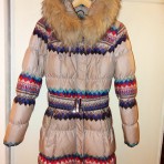Пуховик почти новый, одет несколько раз. Длина от плеча - 85 см; рукав - 63,5 см.; от плеча до плеча - 38,5 см.; талия - 74 см.
