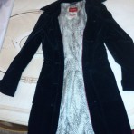 На синтепоне. Длина по спине 88см,рукав 61см,талия 40х2, грудь 46х2