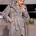 Шикарная шуба из эко-меха под норку с капюшоном и поясом, подчеркивающим талию. Капюшон не отстегивается. По бокам маленькие разрезы.