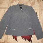 Жикет серого цвета: 48 размер, к нему есть прямая длинна юбка с розрезом с боку