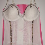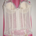 Shukarnuj cvadebnuj libo dlia ocobogo clychaja komplekt, coctoyashij iz dvyx detalej: krywevnogo korceta i trycikov v ton. Briteli regyliryutcia dlia ideal6noj pocadki, na cpine zactegivaetcia na kryuchki (krychki v 3 riada - chtobu regylirovat6 korcet po vashemy razmery). Prishepki dlia chylkov otctegivayutcia, i tak we regyliryutcia. Razmer korceta 34C, nash 75D, tryciki: "S/M". 100 % Original kypleno v USA.