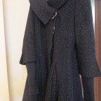 Стильное пальтишко . р-р 44 , рукав 3\4 , на скрытых пуговках продолжение вязаное рукава , очень красиво под высокие кожаные перчатки. пуговицы скрытые. возможно под пояс узкий под цвет вашей обуви или сумки.