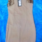 Продаю новое модное платье фирмы TOP SECRET бежевого цвета с кожаными вставками золотогоцвета, на бирке размер 40 (наш 46). Ткань плотный трикотаж, очень хорошо тянется. Мои замеры ОГ 44 ОТ 38 ОБ 48,5...