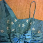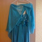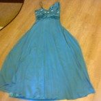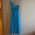 Красивое,нарядное платье.Одевалось один раз.Шила под заказ,верх украшен бисером,низ атлас.Цвет бирюза .Очень приятное к телу качество из лучших.Объем груди 93см на рост 180 см.Можно сделать длину по своему желанию.