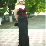 вечернее платье. размер 36 (S-M). черное с красным. на бретельках. впереди разрез. одевалось один раз .