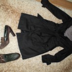 Красивый классический плащ черного цвета. Размер 48. Красивый фасон, сидит отлично. Состояние хорошее.