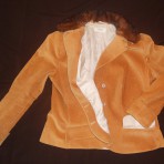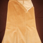 Женственный вельветовый костюм: жакет и юбка-годе. Воротник - натуральная норка, подкладка - шелк. Воротник отстегивается, под ним воротник жакета. Два кармана, подплечники.