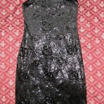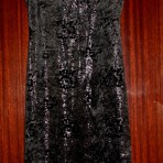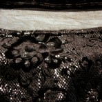 Цвет чёрный, стрейч-велюр с лазерным рисунком цветов; бретельки и кайма вверху, и рюши внизу – из стрейч-велюра; спереди вставка из стрейч-сетки.