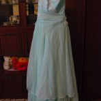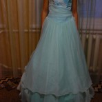Продам вечернее платье бирюзового цвета, размер 46. Корсет вышит бисером, юбка шифон. Платье в нормальном состоянии, целое. Можно одевать с кольца и без
