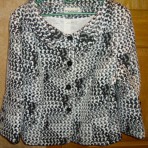 Пиджак состояние нового.Одет пару раз. Размер 48,но вроде большемерит.Рукав свободный,,3/4. Красиво выложен воротник. Смотрите замеры.