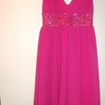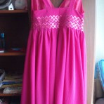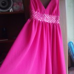 Новое платье шилось на заказ.Не разу и не одетое,так как поправилась.Размер где-то 46-48,но надо мереть.(Я не влажу в груди)
