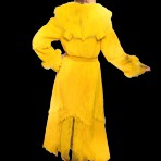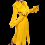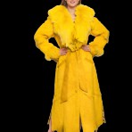 Шинель, нутрия, цвет желтый, воротник "Песец большой с мордой"