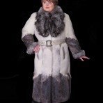 Шинель, нутрия, цвет белый+серебро, воротник Чернобурка