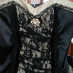 Элегантный атласный костюм черный с бежевыми вставками и кружевом, брошки снимаются, состояние отличное, одевался 2 раза, подчеркивает фигуру, топ сделан корсетом, размер 40. По запросу могу выслать ф...