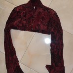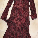 Нарядное платье "тройка" состоит из болеро, корсета и юбки оригинального покроя. Одевалось 2 раза на свадьбу (была дружкой). Ткань легкая, жатка - гладить не надо, не тянется. Очень подойдет для торжественных событий - днем корсет - открытые плечи, а вечером одеть болеро. По всему платью бархатистый орнамент - цветы и узоры. Когда кружишься юбка становиться похожа на крылья бабочки))) за счет покроя.