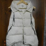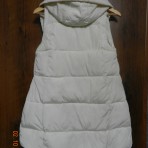 Новая жилетка (с биркой), очень классная - мягкая, тёплая, лёгкая. Приталенного силуэта, расклешенная книзу. Застёгивается на змейку и кнопки. Капюшон не отстёгивается. Врезные карманы тоже застёгиваются змейками. Молочного цвета, фурнитура чёрная. Внешняя ткань, подкладка, наполнитель - 100% полиэстер. На бирке указан размер L, фактически соответствует украинскому 44 р-ру. Ширина по плечам - 33 см, длина спинки - 83 см, длина переда 55 см. Покупала через интернет магазин, но не угадала с размером. На все дополнительные вопросы отвечу, нужные замеры сделаю.