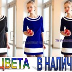 Платье полуприлегающего силуэта выше колен, выполнено из мягкого французского трикотажа, который не мнется, не скатывается и не теряет форму. Горловина изделия круглой формы с белыми вставками. Рукав три четверти с вставками из белого трикотажа. По низу платья белые вставки из трикотажа, что делает платье более оригинальным и утонченным. Благодаря профессионально разработанным лекалам, платье имеет идеальную посадку.