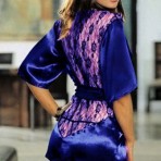 Изделие выполнено из атласа и гипюра. Атлас мягкий, блестящий, отлично пропускает воздух и приятен к телу; гипюр мягкий, эластичный и приятный на ощупь. Изделие с запахом и широким рукавом три четверти. Спинка до линии бедра, выполнена из гипюра, что делает модель невероятно красивой и соблазняющей. В комплекте, пояс из атласа.