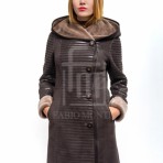 Комбинированная дубленка из натуральной овчины с капюшоном