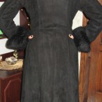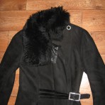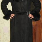 очень мягенькая замшевая кожа, внутри овчинка, воротник и манжеты- мех тоскана, пряжка и пуговка украшены стразиками Сваровски, воротник можно разложить, можно застегнуть под шею, отлично ложится по фигуре