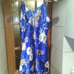 Синяя с цветами: Новая! Атласная ночная рубашка. Размер XXL.