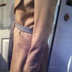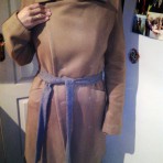 Кашемировое пальто бежевого цвета, очень хорошего качества. Приятное на ощупь. Шилось на заказ во Францию, но оно не до конца дошито.