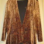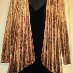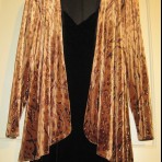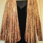 Накидка красивая, возможно носить как каждый день, так и на праздник, потому что в расцветки присутствуют золотые вкрапления, что создаёт яркую, праздничную атмосферу. Накидка идет на размер 48-54. На самой накидке размер не указан, сужу по себе и размерам самой накидки. Отдельно, без блузы или др. наряда одета быть не может, потому что фасон не предполагает наличие пуговицы или другой застежки. Передняя планка книзу слегка закруглена, что видно на фото. Фасон рукава видно на фото. По желанию покупателя сделаю любые дополнительные фотографии, любых деталей и частей накидки.