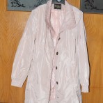 Размер 38-40, отлично стирается, быстро сохнет, на ремне того же цвета. Длина рукава 63 см, длина плаща - 88 см.
