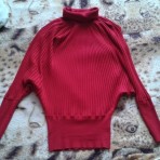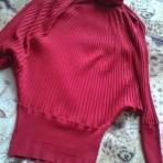 Свитер вишнёвого цвета,трикотажной,тянется.
