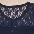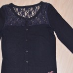Темно-синяя с кружевами Hollister, размер указан М, но явная ХS-S, состояние на фото, рукава 3/4, кружева все целые - 300 грн.