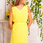 Платье прямого покроя на подкладке, в комплекте пояс из основной ткани. Длина изделия по спинке 88 см.Ткань: хлопок, подкладка хлопок. Размер: L. Цвет: желтый.