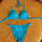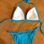 Голубой купальник. Лиф полностью из поролона. Размер – 46. Состояние хорошее. Цена – 30 грн.