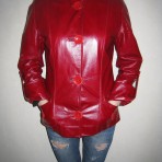Красная кожаная куртка в отличном состоянии. Одевалась всего раз 5, большее время висела в шкафу. Производство Турция.